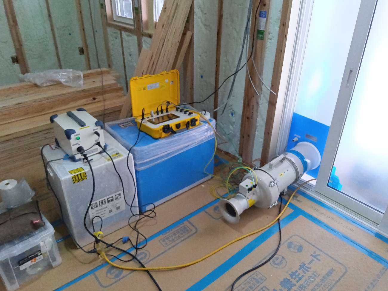 奈良市西登美ケ丘 N様邸にて気密測定を行いました。